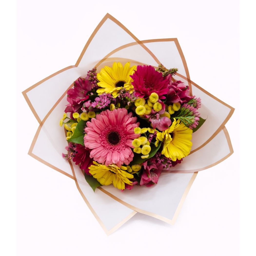 Μπουκέτο με ζέρμπερες, αλστρομέριες και αμάραντο "Vivid Petals Bouquet"