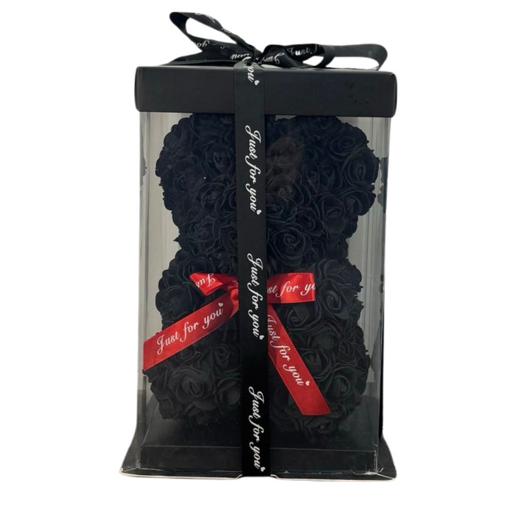 Μαύρο αρκουδάκι από τεχνητά τριαντάφυλλα ύψους 25 cm.Ιδανικό δώρο για τον/την αγαπημένο/νη σας. Σε πολυτελές gift box σίγουρα θα εντυπωσιάσει αλλά και θα κρατήσει για πάντα υπενθιμίζοντας στο άλλο σας μισό τα συναισθήματα σας!