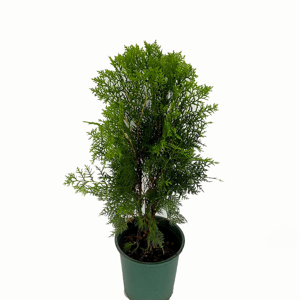 A few words: The thuja is an evergreen coniferous tree. It has a conical shape, compact and its growth rate is slow. The maximum height reaches six meters. The rich foliage of thuja consists of scaly leaves, in colors of green to yellow-green, which turns to copper-green with the drop of temperature in late autumn.
